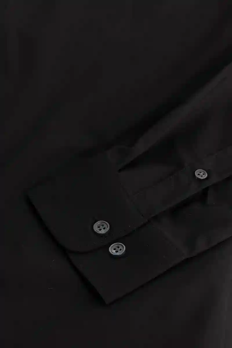 Give a majestic lift to your look with this black plain pattern shirt. The shirt is crafted from fine 98%cotton ,2%spandex. It is a versatile staple and great for teaming with jeans for a more casual look or smartening up with a classic pair of chinos..