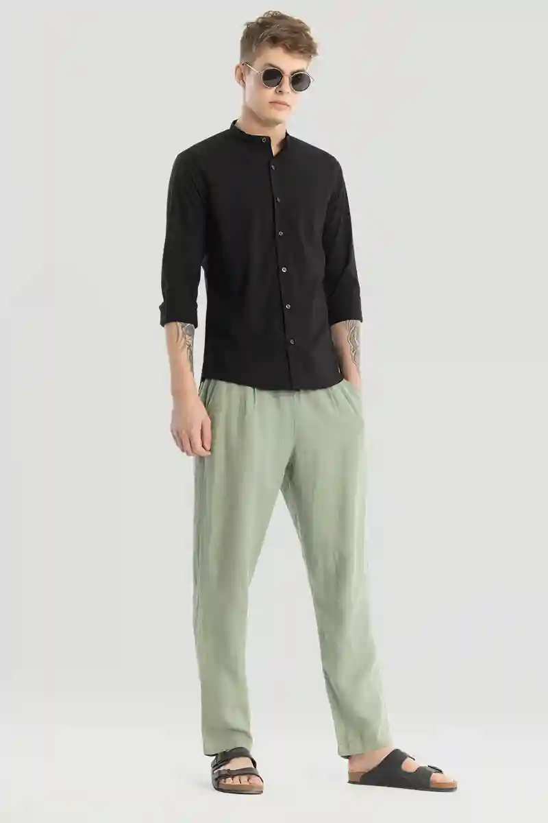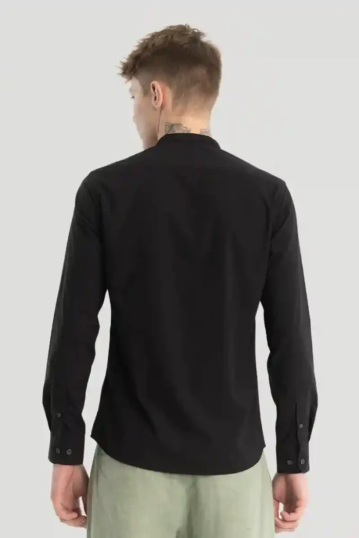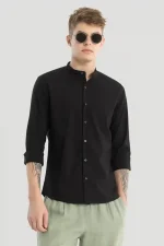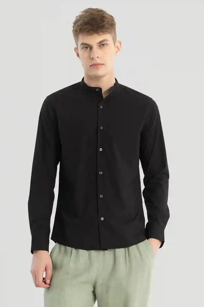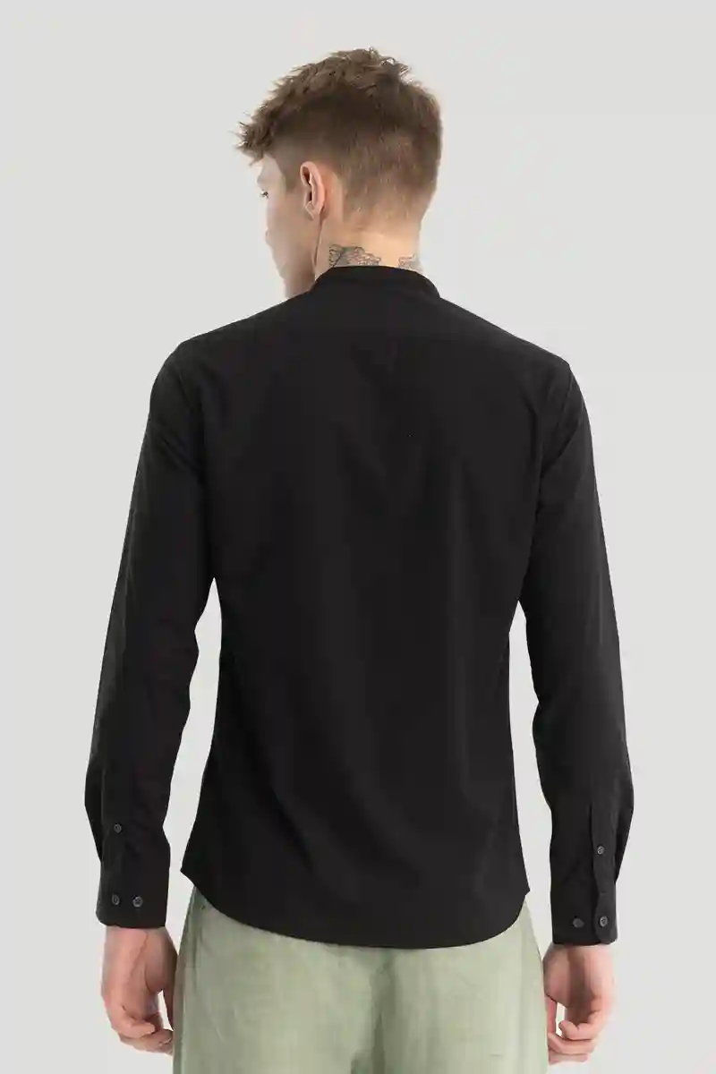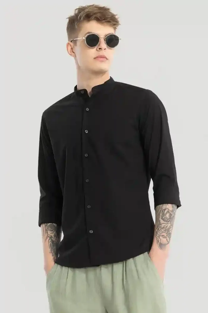 Black Plain Mandarin Shirt