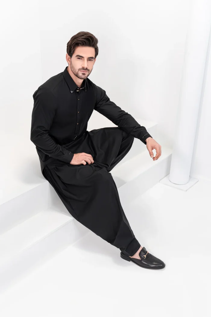 Black shalwar kameez with collar tips