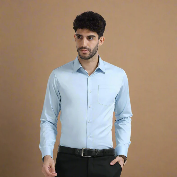 Launching Our All- Season Formal Wear In #Cambridge Long Sleeves. Crafted In Premium Soft Cotton, Its Lustrous Sateen Weave Is Intricately Woven In Solid Ice Blue Color To Enhance The Luxurious Look. Impeccable Finishing & Minute Details Make It Perfect For A Special Occasion When Paired With Formal Trousers. Or Team With Smart Chinos For A Crisp Office Look.