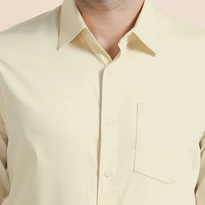 Launching  Our All- Season Formal Wear In #Cambridge Long Sleeves. Crafted In Premium Soft Cotton, Its Lustrous Sateen Weave Is Intricately Woven In Solid Lemon Frost Color To Enhance The Luxurious Look. Impeccable Finishing & Minute Details Make It Perfect For A Special Occasion When Paired With Formal Trousers. Or Team With Smart Chinos For A Crisp Office Look.