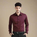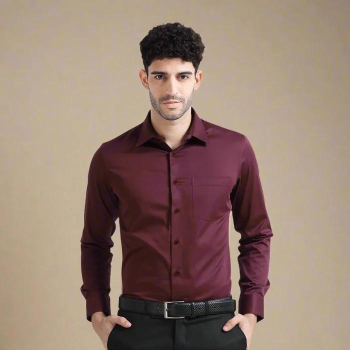 Launching Our All- Season Formal Wear In Cambridge Long Sleeves. Crafted In Premium Soft Cotton, Its Lustrous Sateen Weave Is Intricately Woven In Solid Wineberry Color To Enhance The Luxurious Look. Impeccable Finishing & Minute Details Make It Perfect For A Special Occasion When Paired With Formal Trousers. Or Team With Smart Chinos For A Crisp Office Look.