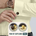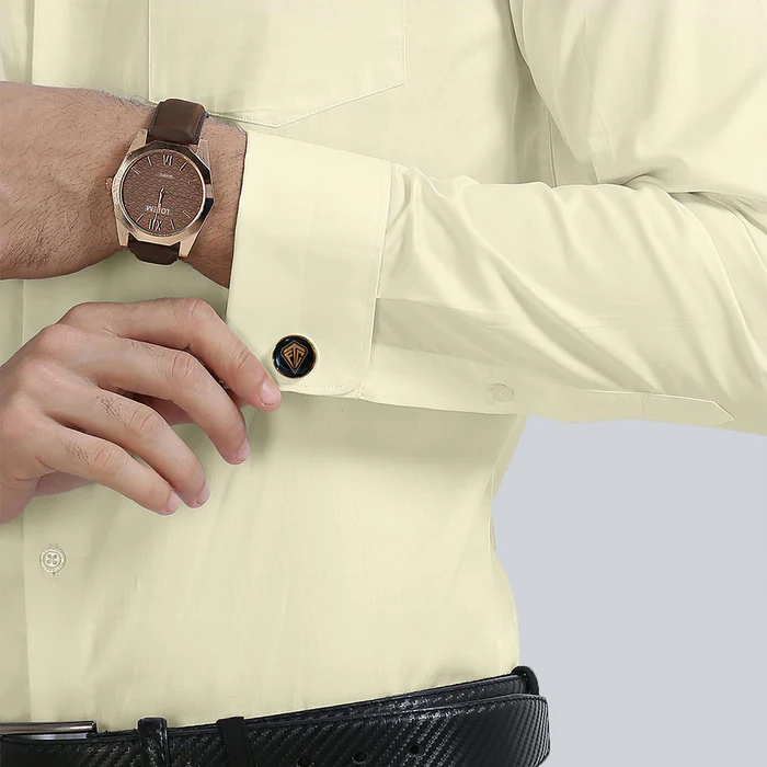 Launching our All Season Formal Wear in Cambridge Long Sleeves with French Cuffs. Crafted in Premium Soft Cotton, its lustrous Satin Weave is intricately woven in solid Lemon Frost color to enhance the luxurious look. Impeccable finishing & finely hand crafted French Cuffs to be worn with a classy pair of Cuff Links , make it perfect for a special occasion.