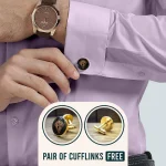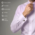 Launching our All Season Formal Wear in Cambridge Long Sleeves with French Cuffs. Crafted in Premium Soft Cotton, its lustrous Satin Weave is intricately woven in solid Dusty Rose color to enhance the luxurious look. Impeccable finishing & finely hand crafted French Cuffs to be worn with a classy pair of Cuff Links , make it perfect for a special occasion.
