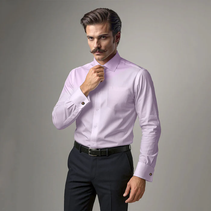 Launching our All Season Formal Wear in Cambridge Long Sleeves with French Cuffs. Crafted in Premium Soft Cotton, its lustrous Satin Weave is intricately woven in solid Dusty Rose color to enhance the luxurious look. Impeccable finishing & finely hand crafted French Cuffs to be worn with a classy pair of Cuff Links , make it perfect for a special occasion.