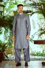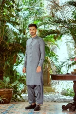 Grey pure cotton sherwani collar shalwar Kameez