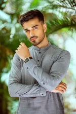 3 reviews for Grey pure cotton sherwani collar shalwar Kameez