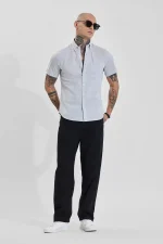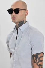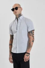 Crisp and clean, this slim-fit shirt from Snitch features a light grey hue and a classic button-down collar. Made from 100% cotton, it offers breathable comfort and a polished look, perfect for both casual and semi-formal occasions. The short sleeves and single chest pocket add a touch of modern style.