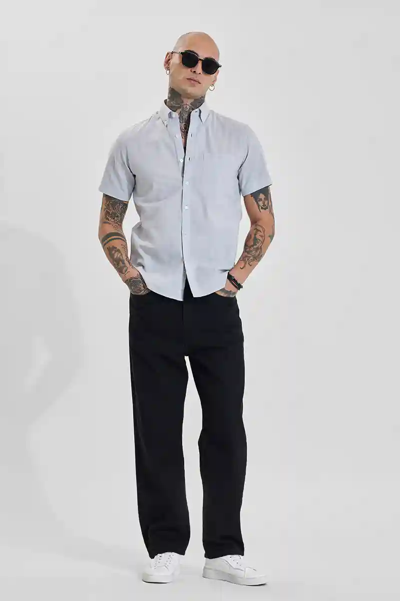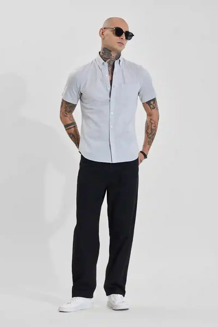 Crisp and clean, this slim-fit shirt from Snitch features a light grey hue and a classic button-down collar. Made from 100% cotton, it offers breathable comfort and a polished look, perfect for both casual and semi-formal occasions. The short sleeves and single chest pocket add a touch of modern style.