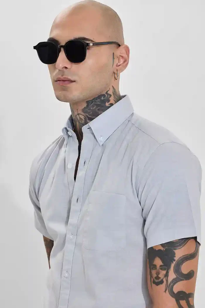 Grey Solid Slim Fit Button Down Shirt