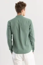 Linen Elegance Green Plain Shirts