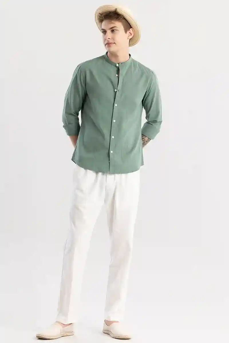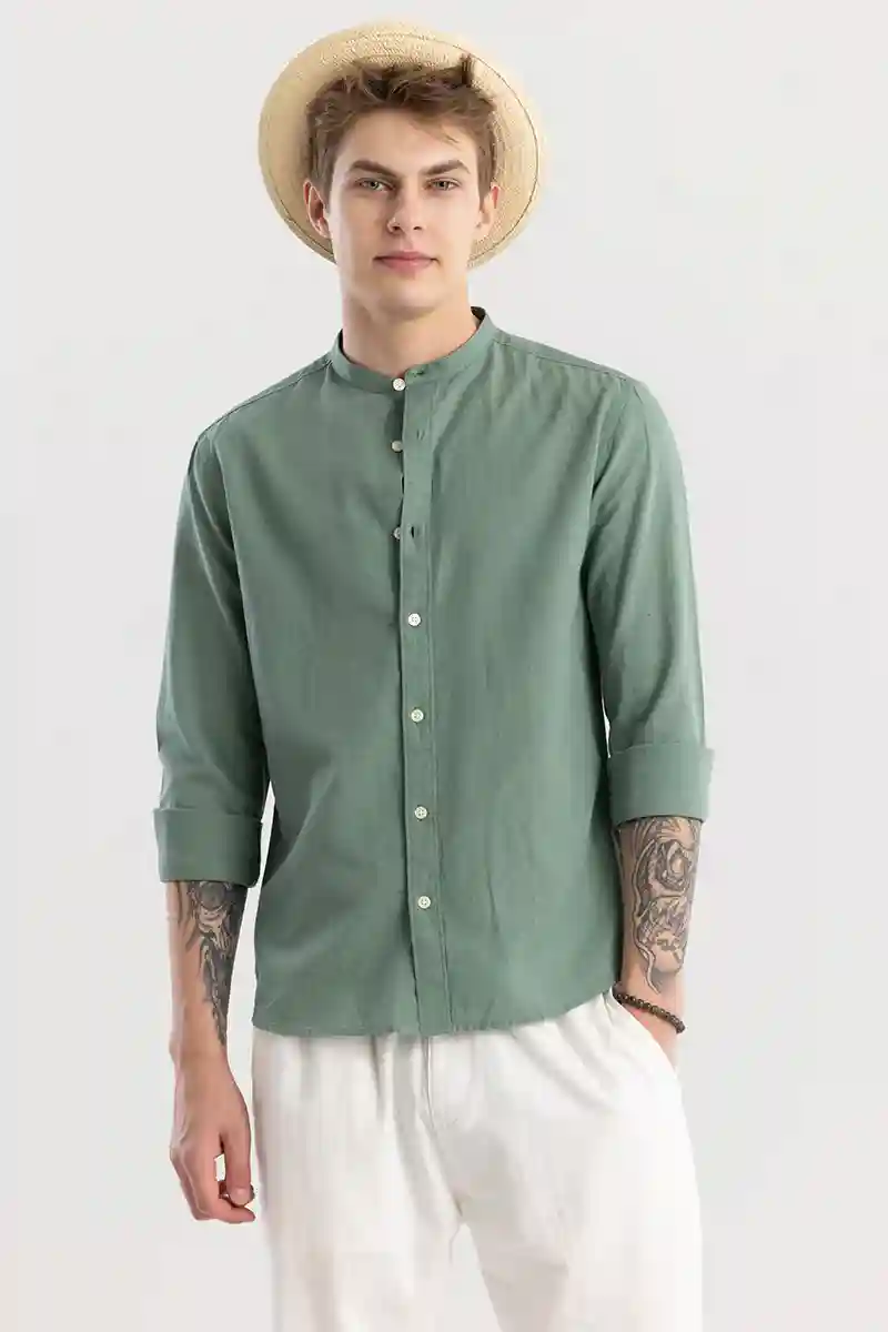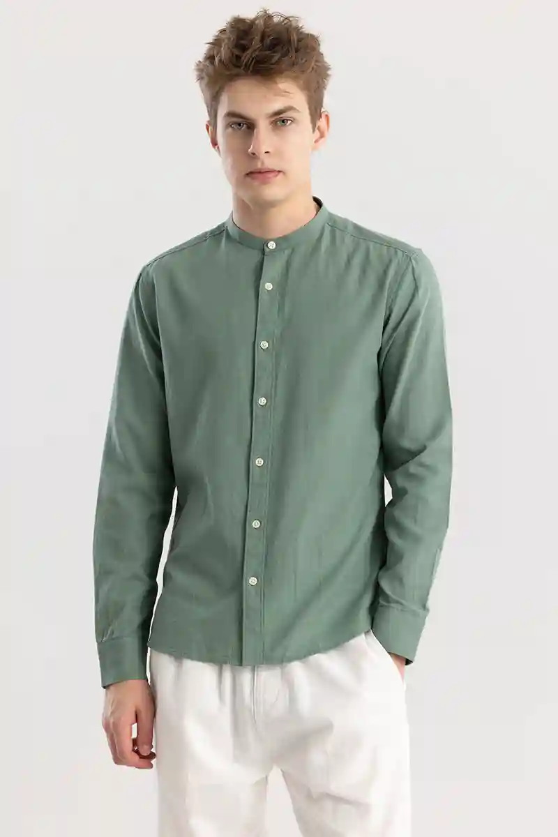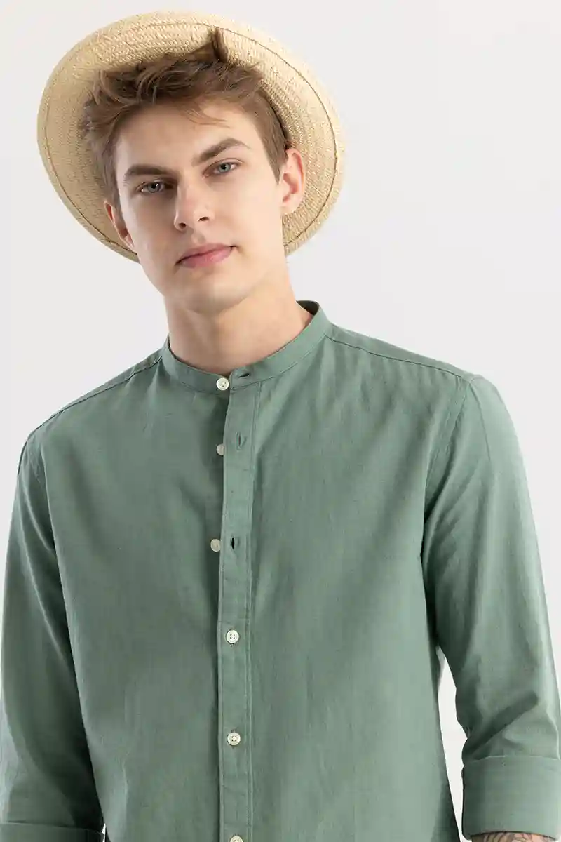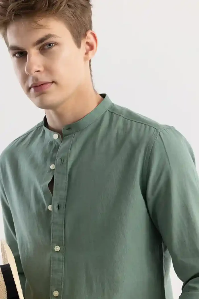 Linen Elegance Green Plain Shirts