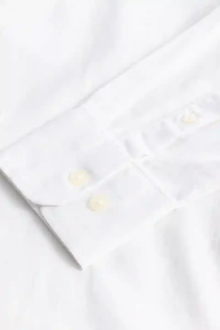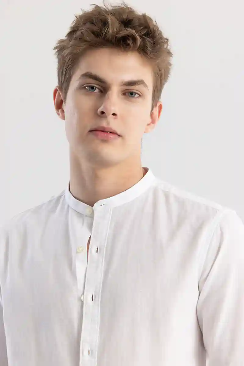 Give a majestic lift to your look with this white plain pattern shirt. The shirt is crafted from fine 53% linen,47% cotton. It is a versatile staple and great for teaming with jeans for a more casual look or smartening up with a classic pair of chinos..