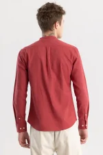Linen Elegance Red Plain Shirt
