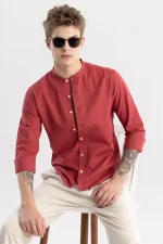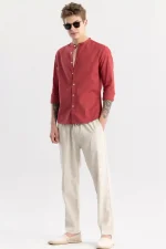 Be the first to review “Linen Elegance Red Plain Shirt”