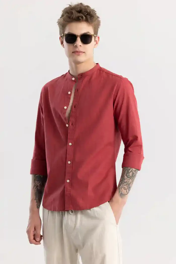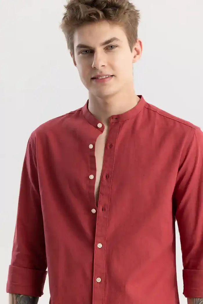Be the first to review “Linen Elegance Red Plain Shirt”