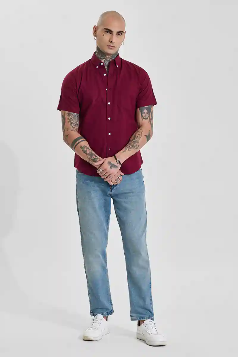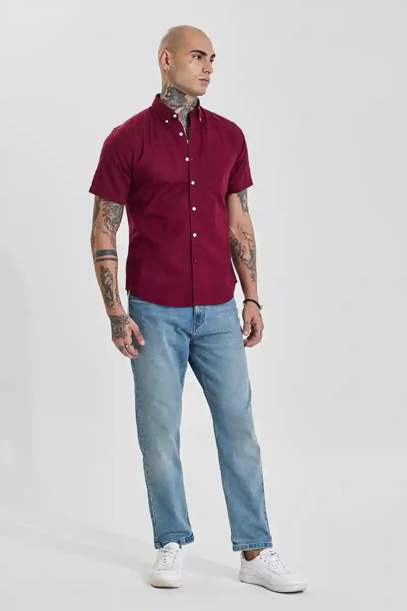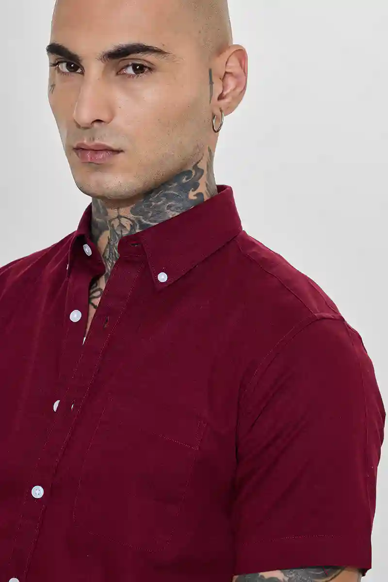 Rich Burgundy hue and slim fit make this 100% cotton shirt a standout piece. Featuring a button-down collar and a single chest pocket, it combines classic style with modern comfort. Perfect for both casual and semi-formal occasions, this shirt offers a versatile addition to your wardrobe at an affordable price.
