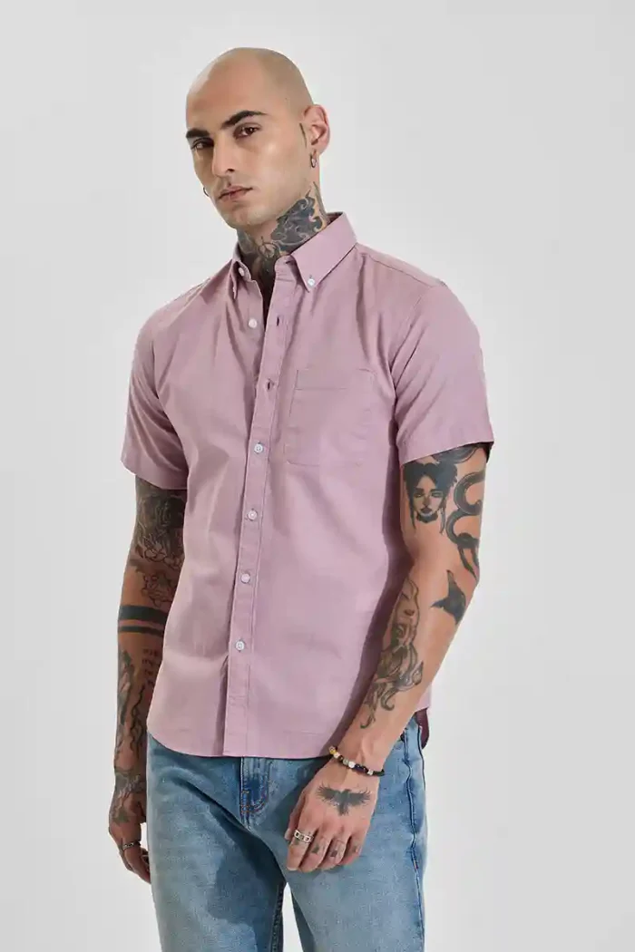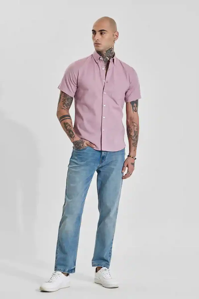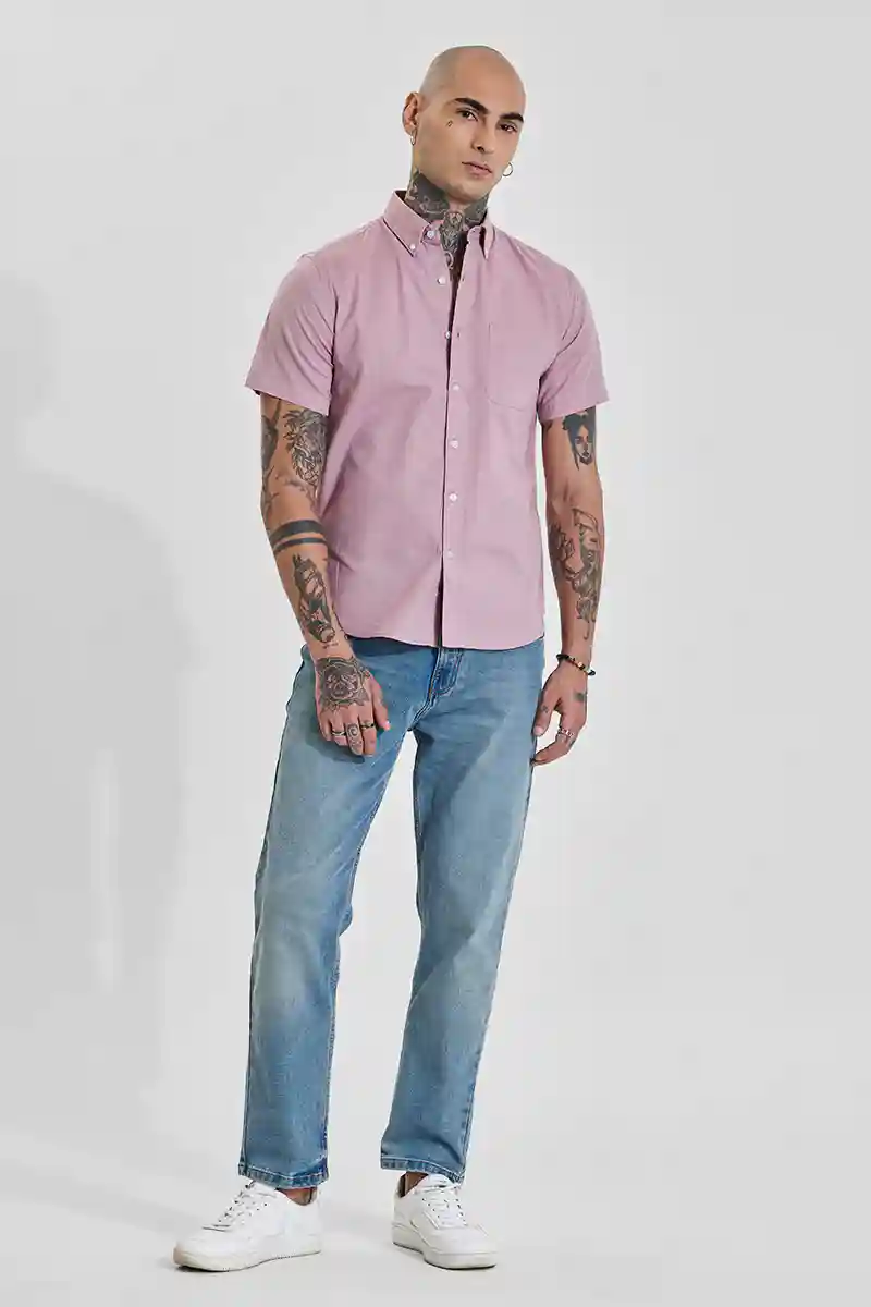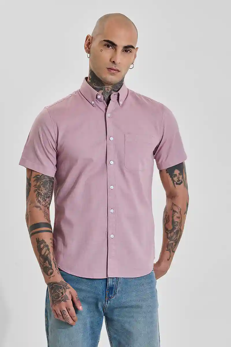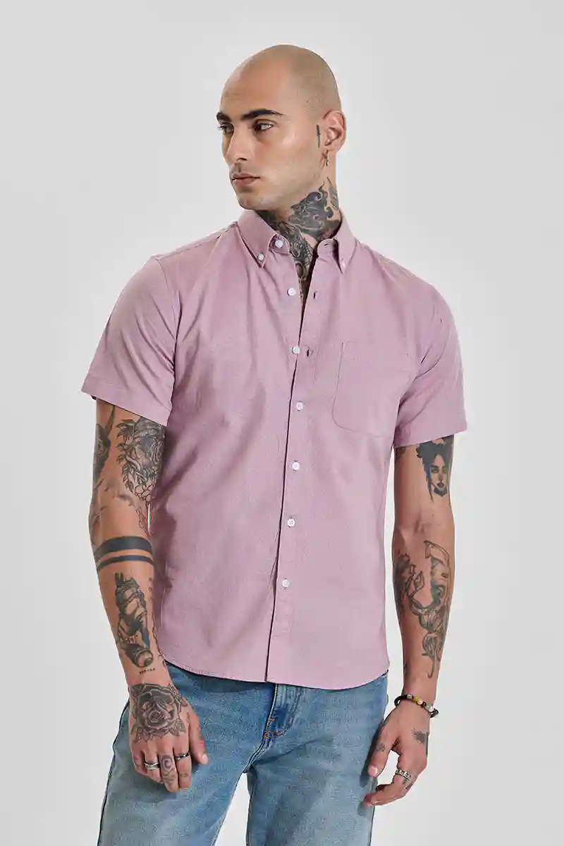 Soft Dusty Rose hue elevates this slim-fit shirt, featuring a button-down collar and a single chest pocket. Crafted from 100% cotton, it offers breathable comfort and a refined look, perfect for both casual outings and smart-casual settings. Experience quality and style at an affordable price with Satar.