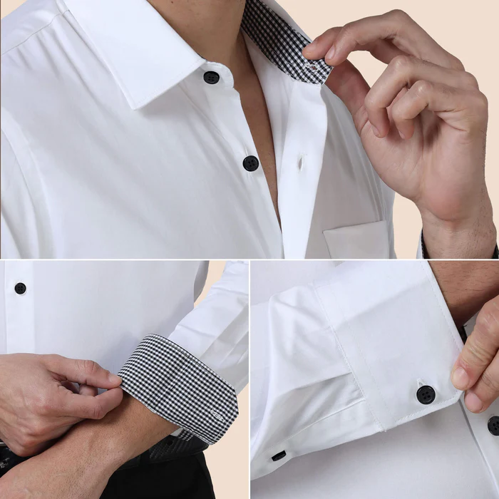 Unveil timeless sophistication with SATAR’s Vintage White Shirt with Black Buttons — a distinguished full-sleeve shirt crafted to elevate your wardrobe. Made from premium 100% Cotton, this shirt combines luxurious softness with breathable comfort, perfect for professional environments, upscale events, or any occasion that demands a sharp, refined look.