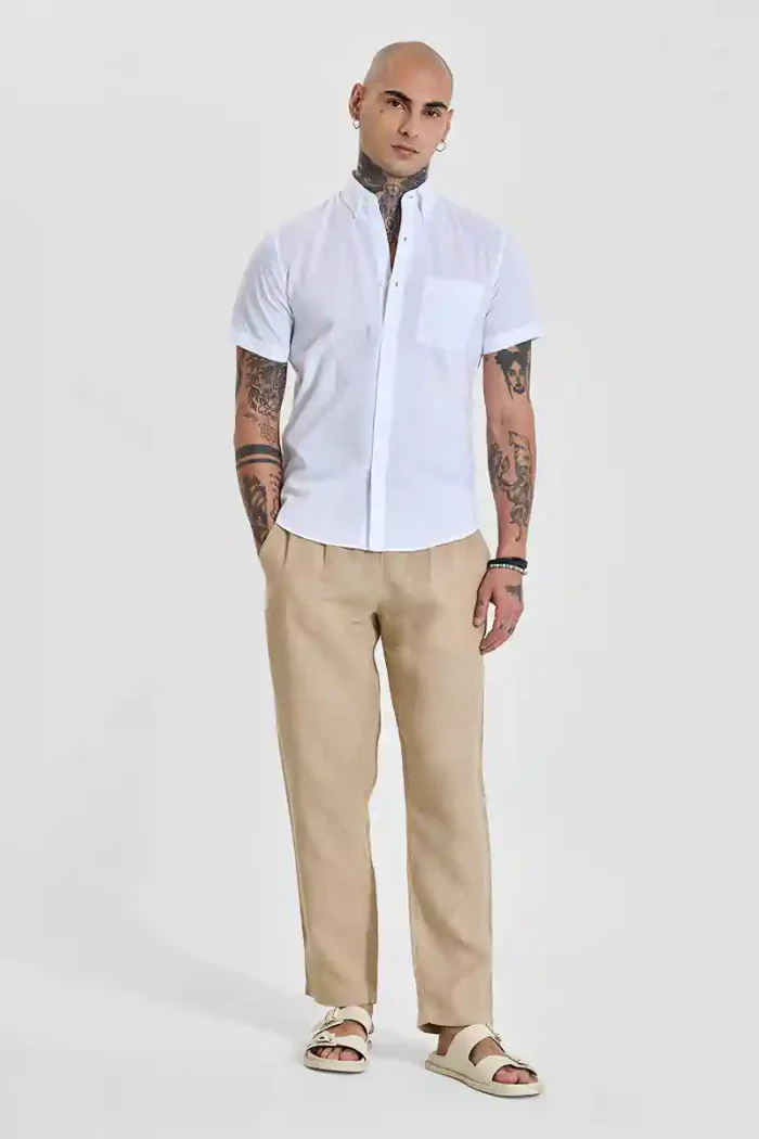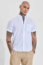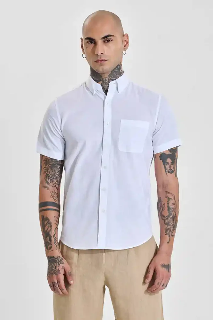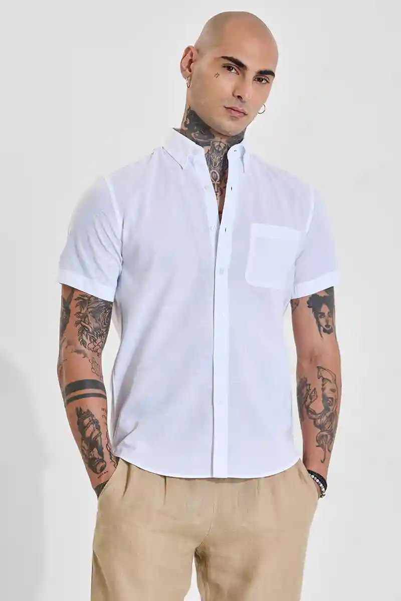 Crisp and clean, this slim-fit white shirt from Satar is crafted from 100% cotton for ultimate comfort. Featuring a classic button-down collar and a single chest pocket, it’s perfect for both casual and formal settings. Elevate your wardrobe with this versatile piece that offers style and affordability.